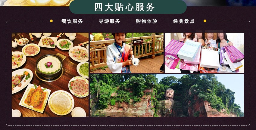 1、此行程为我社纯玩行程,行程内除了有新赠景点以外我社导游不安排任何购物项目。(乐山、峨眉山是佛教圣地景区内有很多宗教场所和贩卖当地特产的小贩,游客在景区以内参加的宗教活动和自行购买的商品我社不承担任何责任)。