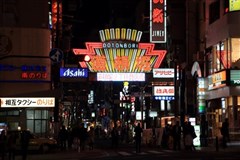 【道顿崛美食街】道 顿堀是是大阪人所谓的“吃趴下”饮食文化的发源地。在道顿堀河边挤满了各种大大小小的饭店,巨大的广告牌吸引人注目。河北岸有很多酒吧和小饭馆。道顿堀狭 小街道的沿途两旁的小饭馆和酒吧间,简直多得数不清。五颜六色的霓虹招牌、别出心裁的广告和装饰豪华的门面,呈现出一派灯红酒绿的繁荣景象。