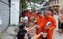 晨于晨雾中参加琅勃拉邦著名的【僧侣化斋】(40-60分钟)仪式:(小乘佛教国家特有文化习俗)亲自对数千名僧侣进行布施,体验老挝人民对于宗教的虔诚与执着,早餐后前往有着小桂林之称的万荣,前往坦普坎溶洞探险,在洞外小溪中畅游,晚间在万荣酒吧街内,与来自世界各地的游客一起畅饮老挝啤酒 。