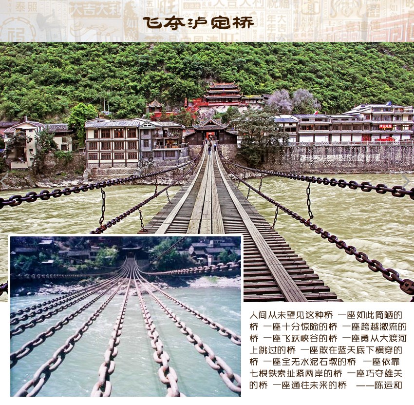 ★泸定铁索桥:著名的红色旅游城市-泸定,上桥游览泸定铁索桥,回顾历史,感悟今日,敬仰英雄。
