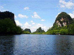 早餐后,乘车前往码头,搭普吉岛特有的【长尾船】穿越珍贵的【红树林】前往素有“海上桂林”美誉的【攀牙湾】(游 览约60分钟)。红树林遍布的海湾内,星星点点的小渔村与远处的奇形怪状的岛屿,伴随着惬意的海风迅速向船后飞驰而去。约三十分钟后,我们便可抵达攀牙 湾。这里遍布着数以百计的石灰岩小岛,还有巧夺天工的钟乳石岩穴和数不清的怪石、海洞。在这里我们可以看到因电影007而闻名的【007岛】,相传为隐士修行的钟乳岛石洞穴,更以其天然奇景而著称。【割喉岛】因怪石嶙峋而闻名于世,在这里将感受二人一组的皮筏艇,在经验丰富的工作人员的陪伴下来一次刺激的【泛舟之旅】(约20分钟),划艇穿梭于各种奇形怪状的溶洞之间,探寻大自然的鬼斧神工,巡游经千万年海水冲击形成的各种岩洞及钟乳石洞,映入眼帘尽是浑然天成的自然景观,美不胜收。从攀牙湾返回后晚餐返回酒店休息。晚上观看著名的【人妖歌舞表演】,欣赏美轮美奂的人妖美女们在舞台上精彩表演,让你真假难辨。表演结束后,你还可以与人妖近距离的进行拍照留念。