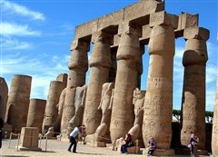 上午:参观【哈素女王庙】(入内参观约30分钟),是古埃及的女法老,其陵庙就在帝王谷东边,是古埃及唯一一座三层神庙,也是这位女法老存世不多的纪念建筑,于此可以看到她为自己编写的“受命于天”的浮雕。之后乘车前往参观【哭泣的孟农神像】(外观约15分钟)。参观世界最大的神庙群【卡尔奈克神庙群】(入内参观约1.5小时),该神庙是供奉历代法老王之地,神庙建筑法则及其布局之严谨,令人叹为观止。外观气势恢宏的【卢克索神庙】(外观参观约10分钟),该神庙是供奉底比斯神亚蒙而建造。