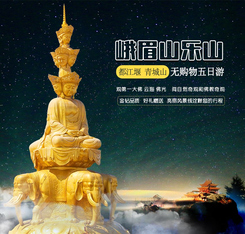 四川成都、乐山大佛、峨眉山、都江堰青城山(金钻)地接五日游 推荐 特价 热卖 新品 团购