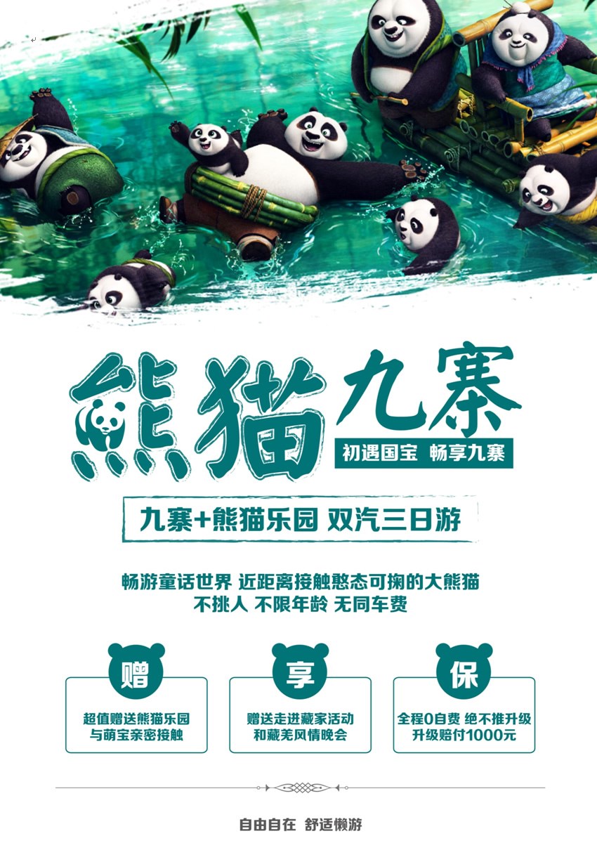 九寨沟.熊猫乐园.黄龙纯玩三日游(逗熊猫游九寨 纯玩团) 推荐 特价 热卖 新品 团购