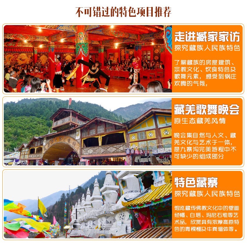 6、娱:我们只为您推荐最好的晚会:九寨沟藏羌歌舞晚会+走进藏家晚会。