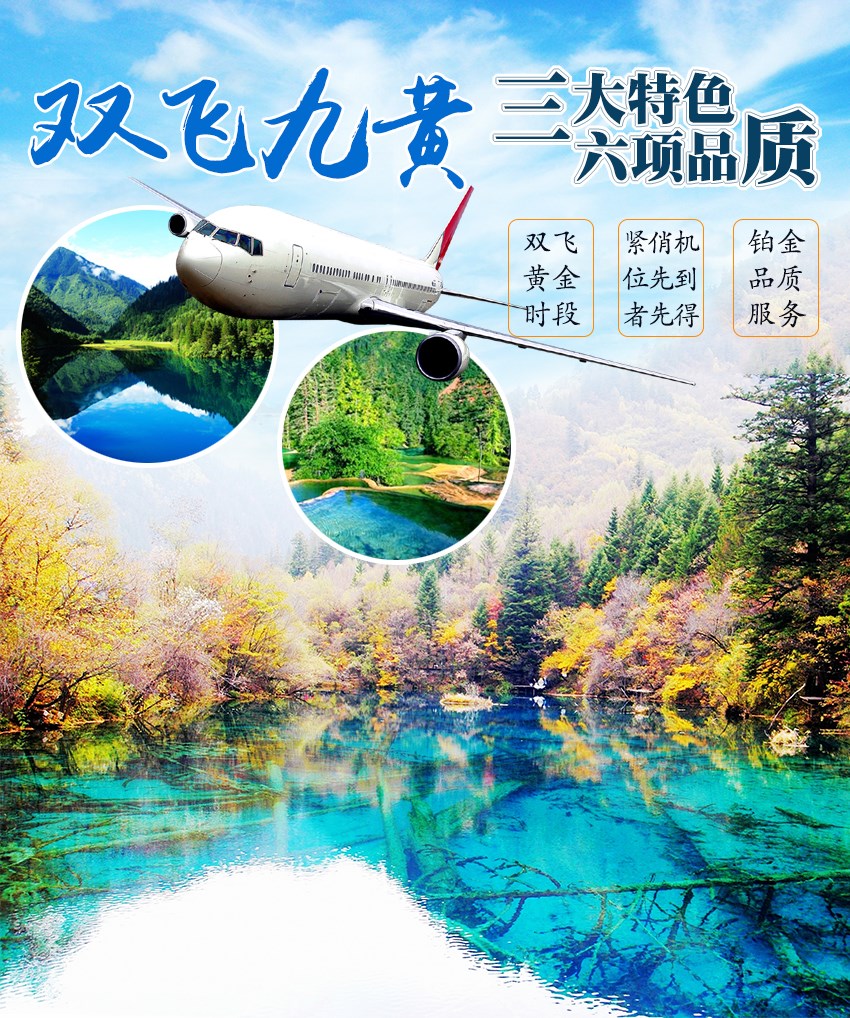 九寨沟黄龙双飞三日游(中班、早班 成都直飞九寨沟 安全 快捷 方便) 推荐 特价 热卖 新品 团购