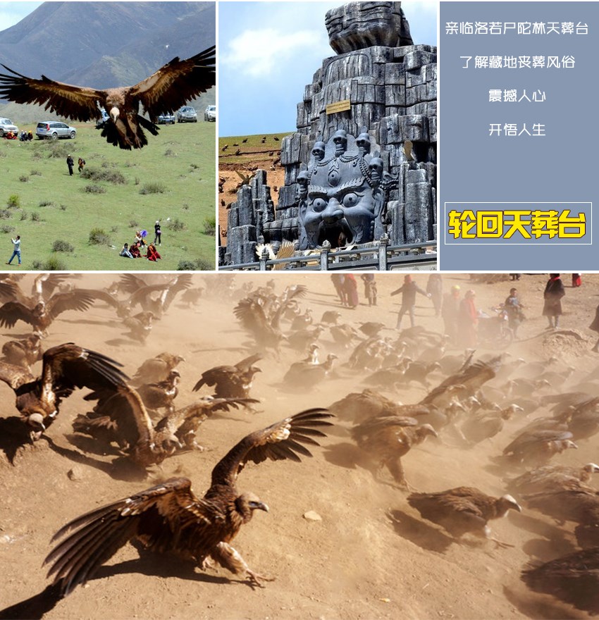 午餐后前往天葬台,观看【天葬】(自理交通车往返40元/人,或自行徒步前往50分钟左右),可参观雕塑,了解藏地天葬习俗,看上百只秃鹫在上空盘旋,带领逝者往生极乐,场面非常壮观,不由得让你感叹人生,更加珍视自己的生命!