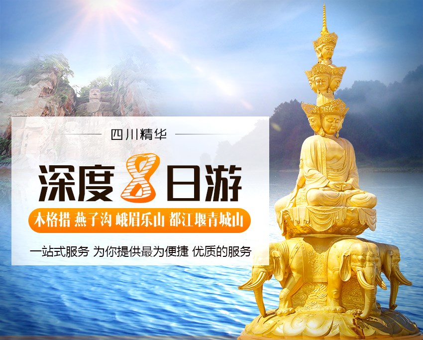 <四川全景品质汽车8日游>成都木格措、燕子沟、峨眉乐山、都江堰青城山 推荐 特价 热卖 新品 团购