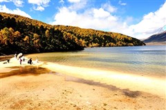 10:00 ——乘当地观光车(观光车90元/人,不含,必须消费)进入景区。木格措风景区(游览时间不低于4小时)由杜鹃峡、赛马坪、七色海,药池沸泉、木格措(野人海)和红海草原六个小景区组成.木格措湖景色一日多变,在此还可观赏到“猛虎卧山”、“观音镇海”等奇妙山景。在不同季节还可欣赏“双雾坠海”、“木格夕照”、“木格涨潮”和迭瀑飞泉等云、雾、霞、水奇观;在珍珠滩可享受沙浴、日光浴之乐。海滨可享沙浴、日光浴之乐,湖中可乘坐游船(往返66元/人,游客可以根据自身情况自费乘坐游览,游船运营时间:4月份-10月份),七色海海拔2600米,是一处湖水与温泉交融的高原湖泊,湖面呈月牙形,周围由森林、草甸环绕,清雅幽静,湖水清澈透明,随阳光天气变化湖水色调呈七色变化,七色海因之得名。药池沸泉海拔3500米,这里仅高温喷泉眼就有20多处,最高水温高达90℃,其热源来自地壳深处200℃的热蓄区,水质含有多种对人体有益的微量元素,属锂、锶、偏硅酸、碳酸优质天然浓矿泉。杜鹃峡是木格措景区的走廊,药池沸泉泉眼数十个,景区以高山湖泊及温泉为主要特色,融原始森林、草原、雪山为一体,互相映衬,一派原始古朴而幽静的自然景色。红海草原因高山湖泊—红海而得名,当地藏民将红海称之为“小海子”,以区别于被称之“大海子”的木格措。红海草原这里芳草如茵,野花遍地,让游客亲身体验那幽香沁人的格桑花就在雪山下的绝世美景。