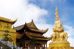 约10:00:抵达国家5A级景区、世界自然与文化双遗产【峨眉山风景区】(游览时间约6小时),换乘观光车从黄湾站出发,沿途皆为山路,可能会出现颠簸不适;下车后是今天第一段山路,满眼是绿色的植被和粉红的杜鹃花。约12:00:抵达雷洞坪享用【野菜宴】(用餐时间约30分钟),峨眉山是植物的王国,当地的野菜既是佳蔬,又是良药, 且风味独特、营养价值高,可谓野菜中的极品。我们精选每一味野菜,让您放心享受大自然的恩惠。约12:30:餐后向峨眉主峰【金顶】出发,此为峨眉山精华所在,朝拜高48米的十方四面佛,参观金、银、铜殿和舍身崖,这里离天空最近,礼佛也最灵。根据天气情况,有缘人还可能观赏到佛光、圣灯、云海等奇观。