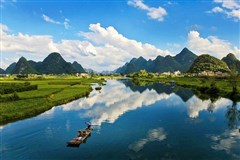阳朔早餐后乘车至磨盘山码头(车程约40分钟左右),乘船游览百里画廊—漓江精华游(游览时间不低于3.5小时左右,船上含中餐盒饭。PS:根据漓江水位变化,游览时间会相应调整):欣赏草坪幽洞,九马画山,黄布倒影等景点。阳朔龙头山码头下船后步行穿过码头的商业街,在街口乘电瓶车前往西街漫步(导游车辆均不跟随,自由活动时间不低于60分钟)。西街号称地球村、洋人街,酒吧、咖啡厅、西餐厅一条街,特色包含了中西方文化,孕育了跨国婚恋风情,是中国有名的户外运动集结地,每年吸引国内外的户外高手来挑战和交流,也是世界上10大“艳遇”发生地之一。在约定时间和地点集合乘电瓶车返回停车场(16:00后无电瓶车),乘车前往月亮山农家餐厅品尝地道的农家饭和阳朔风味啤酒鱼。晚餐后返回桂林。