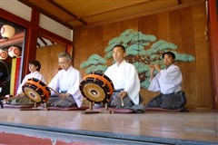 【三岛大社】(约 30分钟)是伊豆半岛最大的一个神社。是创建镰仓幕府(1192年-1333年)的源赖朝举兵祈祷成功之地。有着千年的以上历史。建筑规模完整,进入大门 的鸟居,参道的两侧为神池,总门有艺能表演舞台等,进入神门首先映入眼帘的是舞殿,绕过舞殿即是正殿。正殿和舞殿雕梁画柱,建造精细。特别是舞殿上雕满了 各种各样的中国古代传说。