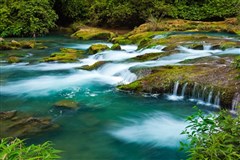 【天星桥】它位于黄果树大瀑布下游7公里处,这里主要观赏石、树、水的美妙结合,是水上石林变化而成的天然盆景区。天星桥景区石笋密集,植被茂盛,集山、水、林、洞为一体,被游人称赞为:"风刀水剑刻就"的"万倾盆景","根笔藤墨绘帛"的"千古绝画"。(1.5小时)