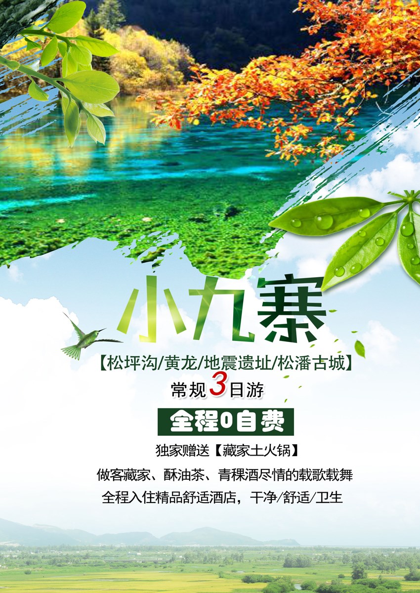 九寨沟黄龙三日精品游(0自费+赠送烤羊家访和藏羌晚会)详情电询