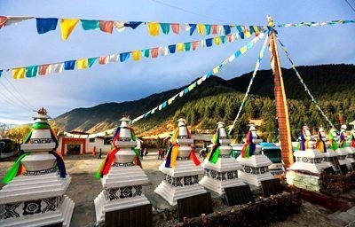 | 行程介绍 | 7:00九寨沟酒店用完早餐后,出发到达【藏族村寨】(游览不低于1小时),体验民族地区文化特色及经济建设成就. 川盘藏乡 松潘县川主寺镇水晶乡川盘村,这里可以了解东方藏族人的风俗习惯,民族特色,参观四川省非物质文化遗产川盘花灯演出,欣赏藏传佛教文化中的壁画、经幡、白塔、玛尼石堆等艺术品,了解具有浓厚高原特色的青稞棚及牛粪墙体等,这里也是为了解决少数民族地区建设和就业推出的原生态的村寨游览。让您在观山玩水、沐浴阳光、亲近自然的同时,能够深入体验韵味深厚、风味淳朴的藏民族文化。