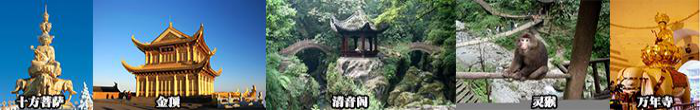 | 峨眉山-成都 | ♦ 峨眉风景区(门票+观光车包含;游览时间约5-6小时):峨眉山国家5A级旅游风景区,以其“雄、秀、神、奇、灵”和深厚的佛教文化,以文化与自然双重遗产列入世界遗产名录,是中国四大佛教名山之一,佛教圣地华藏寺所在地金顶(3079.3米)为峨眉山旅游的最高点,有“秀甲天下”之美誉,山路沿途有较多猴群,常结队向游人讨食,胜为峨眉一大特色, “一山有四季,十里不同天”。 ♦ 游览方式—全天时间饱览峨眉精华景致路线一般为:上午朝拜峨眉主峰--金顶,此为峨眉山精华所在(金佛金顶上高48米的十方四面佛,金、银、铜殿,舍身崖,根据天气情况,有缘人可观赏到佛光、圣灯、云海等奇观);下午朝拜和游览峨眉半山风景区(峨眉最古老的万年寺、历经18次地震400年来安然无恙的无梁砖殿、高7.85米,重62吨,一千多年的稀世国宝-普贤铜像;传说中白娘子修道之地-白龙洞;风景秀丽的清音阁;)清代诗人谭钟岳将峨眉山佳景概括为十景,渐渐人们又不断发现峨眉新十景,这次旅行,您是否又有新的发现呢?