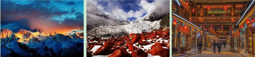★中午:磨西古镇午餐后,前往【海螺沟景区】(海螺沟大门票90元/人,客人自理),游览时间约3小时;自费换乘景区观光车(观光车70元/人,客人自理)海螺沟是亚洲低海拔现代冰川发现地,海拔2850米。其大冰瀑布高1080米,宽0.5米-1100米,是中国至今发现的最高大冰瀑布。沟内蕴藏有大流量沸热温冷矿泉,大面积原始森林和高地冰蚀山峰,大量的珍稀动植物资源,金山、银山交相辉映,蔚为壮观。客人自费乘索道(索道150元/人,客人自理)前往大冰瀑布:宽达1100米,落差1080米,由无数极其巨大的光芒四射的冰块组成,仿佛从蓝天直泄而下的一道银河。除非你亲眼见到,没有任何词汇能形容它的瑰丽伟大。冰川最高点的海拨为6750m,而最下端的海拨高度仅为2850m,它不但是低纬度低海拨的冰川,而且是落差最大的冰川;游览完海螺沟景区之后前往【红石公园】,(游览时间30分钟)散落在山间尤其是溪水流经之处的花岗岩,因其上附着一层红色的藻类(乔利橘色藻,因富含胡罗卜素,故在阳光照耀下呈鲜红色),故被称为红石。后途经康定翻越折多山抵达新都桥,结束一天愉快的行程。