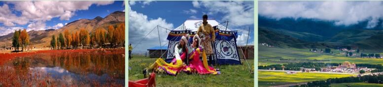 ★早上:早餐后可根据时间和精力在景区自由观光活动。11:00景区门口集合出发,经过桑堆镇【红草地】(注:红草地为季节性景观,只有在每年的 9 月底到10 月初才能看到此处的草原呈红色)。桑堆红草地,极目远望,一片红彤彤的景致映入眼帘,红得那么热烈,那么艳丽,也那么醉人。在或黄或绿的白杨树的衬托下,灿灿生辉,妩媚无比。一株株红草与云南中甸的“狼毒” 类似,红草的植株较小较细。植物由绿变红的原因是秋天的气候条件在促使叶子中糖的积累和变化,糖经过复杂的反应链积累成红色色素,导致秋叶变红,这是植物衰老的标志。